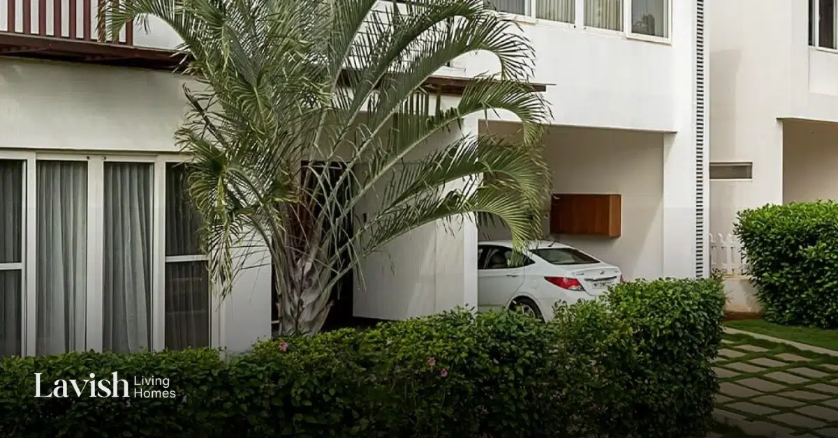 The villas draw inspiration from resort-style living, featuring contemporary architecture, lush lawns, and water bodies for a serene, vacation-like retreat.