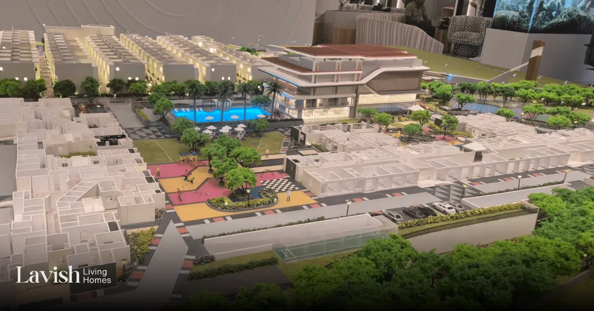 A: The project offers premium and spacious 4 BHK Triplex Row Houses, designed with multi-level spaces to elegantly separate entertainment, family, and private zones.